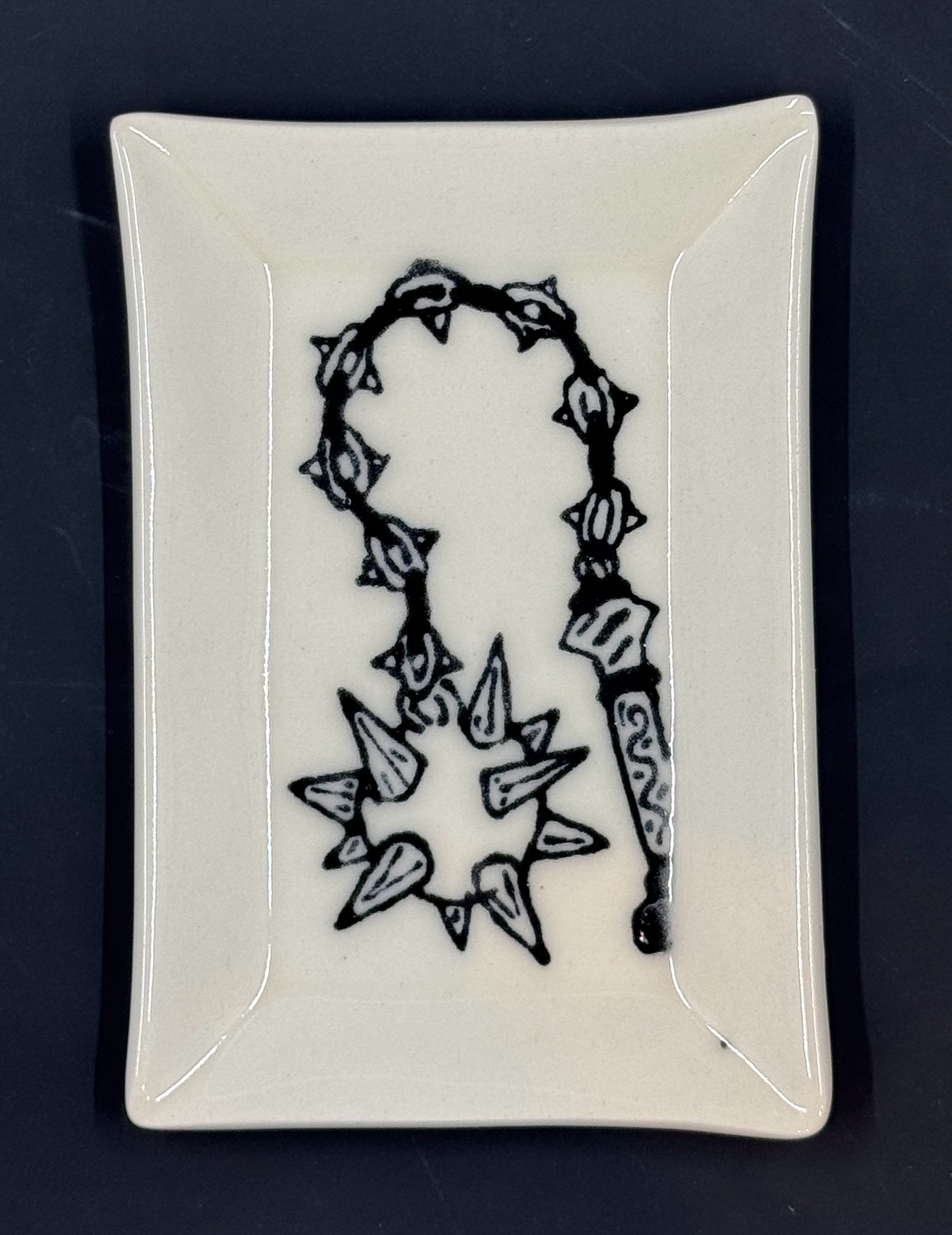 Shop › Flail Plate Flail Plate $25.00 sold out Porcelain trinket tray with hand drawn flail design.•4.25” tall•3” wide•food safe•dishwasher safe•microwave safe Porcelain trinket tray with hand drawn flail design.•4.25” tall•3” wide•food safe•dishwasher safe•microwave safe Sold Out Added!